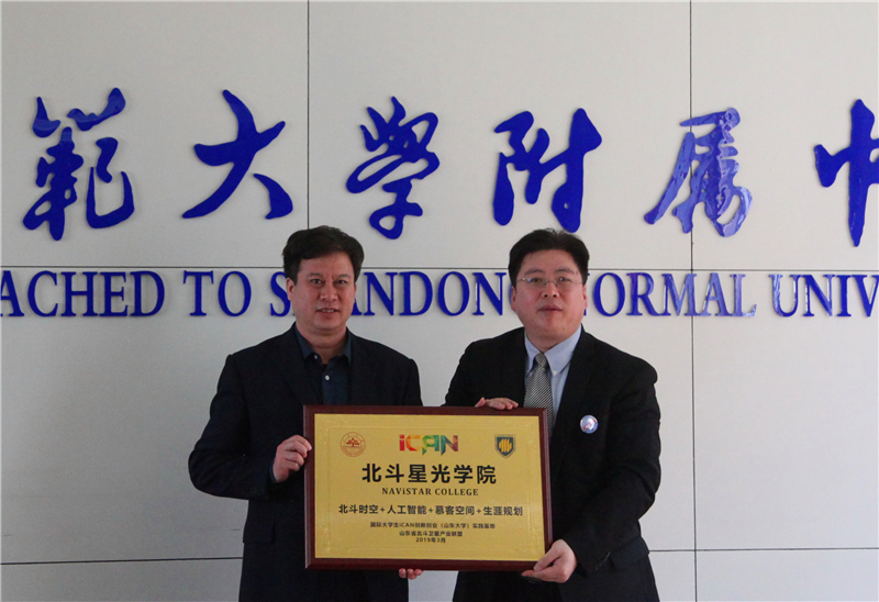最后,王玉璋校长和邢建平教授共同为北斗星光学院揭牌,山东师大附中成为山东省首个授牌“北斗星光学院”的高中学校。