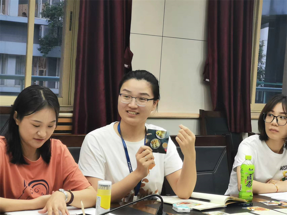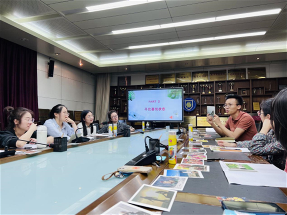 卢敏基于心理指导实践,以体验式的工作坊形式寓教于乐,为新教师的自我成长、自我建设提供建议。她结合三个活动:“寻找喜悦食物”、“寻找喜悦状态”、“彩绘喜悦曼陀罗”,用轻松、自在又充满趣味的方式让每一位青年教师敞开心扉,从繁忙的工作中重新寻找自己、了解自己、接纳自己。借助美食的分享,感受自愈的过程;透过红花卡呈现的生活,与自己的内心相互联结;借助不同形状的曼陀罗花,触及喜悦的色彩和勇敢的力量。卢敏老师用感染人心的活动和蕴含人生百态的分享使每一位青年教师体验心灵的喜悦,升华自己。