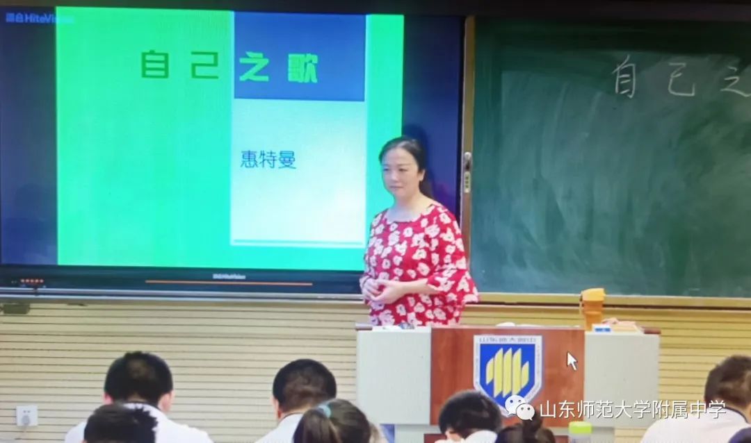 张艳慧老师的课堂以诵读带动鉴赏,主任务是探究《自己之歌》如何在惠特曼逝世后,超越时空被现当代读者接受的原因。鉴赏分为三个部分,第一部分以朗诵的重音处理为把手,通过引导学生说明标注理由,完成三个诗节的内容鉴赏。第二部分对比本诗歌与同为外国诗歌的《致大海》在形式上的差异,让学生进一步感受到内容与形式的统一对抒情产生的积极作用,完成了诗歌由内到外的赏析。第三部分是学生的朗读展示环节。整节课有读有赏,有教师的引领,有学生间的交流,形成了良好的课堂互动。