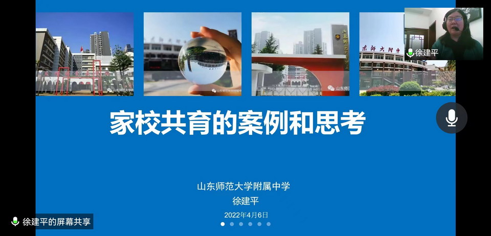 4月6日晚6点半,山东师大附中19期“未来之星”青年学校第20课以腾讯会议的形式如期举行。山东师大附中语文高级教师,济南市立德树人双领军团队成员、优秀班主任徐建平老师作《家校共育的案例和思考》专题讲座,19期星校全体成员及两校区近50位非本期星校班主任共聚云端,学习思考疫情防控常态化形势下的家校共育,会议由校本部教科处主任李贵玲主持。
