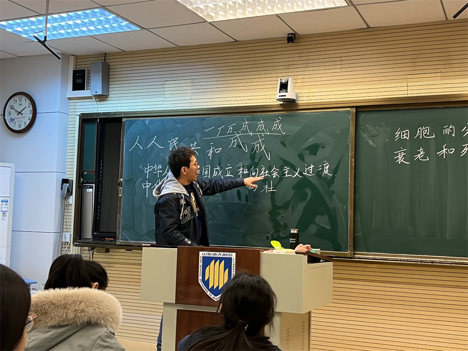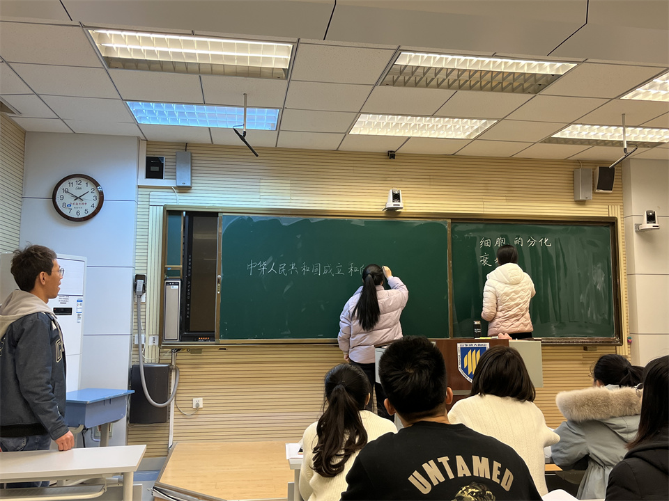 2022年1月5日下午6:30,山东师大附中第19期“未来之星”青年教师学校第14课在校本部逸夫楼401录播教室举行。语文高级教师杨冬朋应邀为星校学员讲授粉笔字书写要求,19期星校全体成员参加学习,校本部教科处主任李贵玲主持活动。