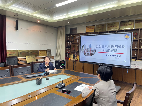 11月3日晚6点30分,山东师范大学附属中学第19期“未来之星”青年教师学校第8课在校本部办公楼二层西会议室举行。山东师范大学附属中学优秀班主任王恩老师应邀作《班级量化管理的策略及有效案例》讲座,第19期星校全体学员参加学习,活动由校本部教科处主任李贵玲主持。