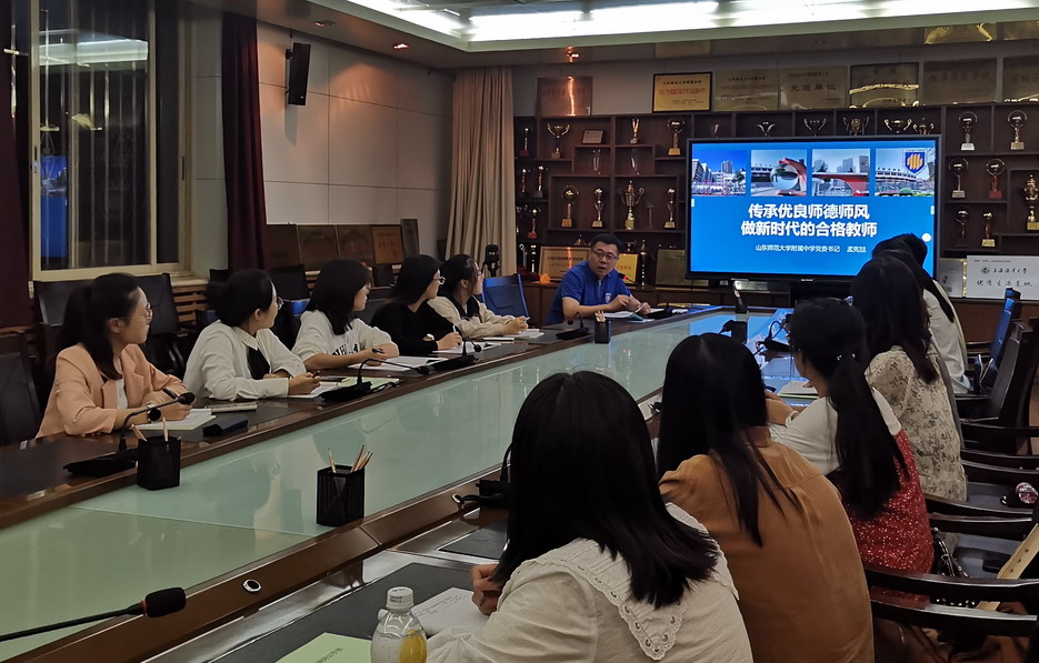 9月29日下午6:30,山东师大附中第19期“未来之星青年教师学校”第4课在校本部办公楼二层西会议室举行。学校党委书记孟宪喆为星校学员作题为《传承优良师德师风,做新时代的合格教师》讲座。活动由校本部教科处主任李贵玲主持。