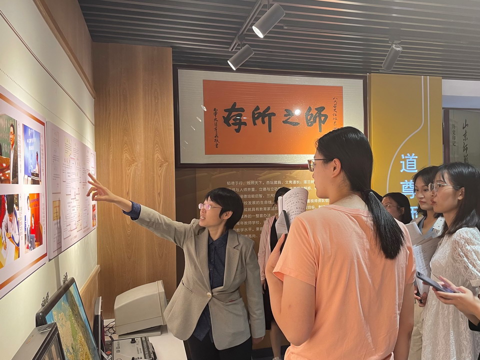 道尊师严广授业,春风化雨德育人。山东师大附中高度重视师资队伍建设,秉承着适应现代教育的发展理念,已逐步形成一支师德高尚、教艺精湛、高素质、专业化、创新型的教师团队。展厅中教改先锋、教师发展、学科团队、贴心老班、精神家园、名师星聚板块的背后是无数个春风化雨、尊师重教的动人故事,这些故事激励着在场每一位青年教师。