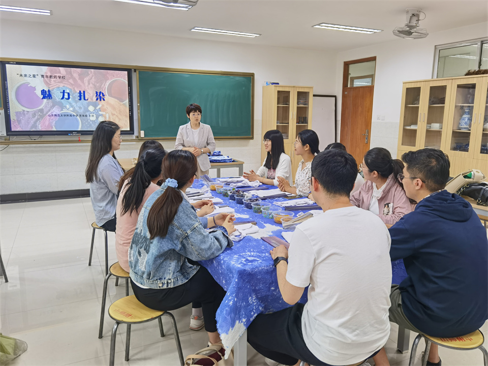 李贵玲在主持活动中提到,今年是“未来之星”青年教师学校成立二十周年,星校伴随了每位入职附中的新教师的职初适应与成长,在附中,每位青年教师的发展得到了方方面面的支持与关怀,他们中的很多人已成为学校发展的中坚与骨干,以自己的方式为实现更美好的附中而默默奉献、努力奋斗。作为广受星校学员喜欢的扎染课,她认为美育是五育融合的重要内容,在培养全面发展的人等方面发挥着不可替代的作用,教师需要强化审美意识、提高审美能力,更好地帮助学生具备美的理想、美的情操、美的品格和美的素养。同时也希望每一位青年教师都可以在以后的工作与生活中不断认识美、体验美、感受美、欣赏美和创造美,并为创造一切美好的事物而奋发向上。