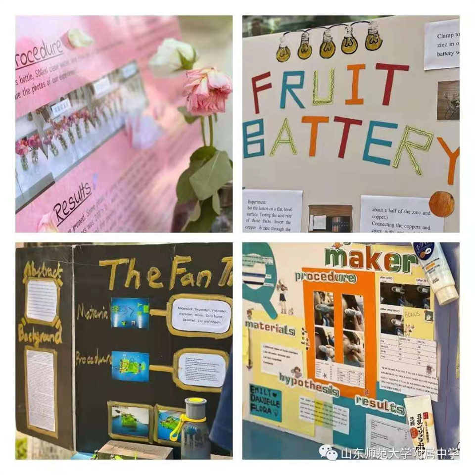 “水果电池”“自制美肤霜”“洗衣水的净化之旅”一个个脑洞大开的课题成为学生们潜心研究的学术主题。本次活动由国际部美方外教和中教老师主要负责组织,历时一个月准备阶段。活动开始前,老师们发放了Science Fair详细活动介绍及活动指南样本。为锻炼学生自主研究能力,两至三名学生成立微科研小组,在数学、物理、生物、化学四个学科中进行选题并独立完成确认课题(Project Summary Worksheet)、课题研究(Materials Methods andData Collection)、数据分析报告(Data Analysis and Conclusion)、和完成展示板(Display Board)等四个阶段,相应学科老师进行指导并对学生成果进行考核。