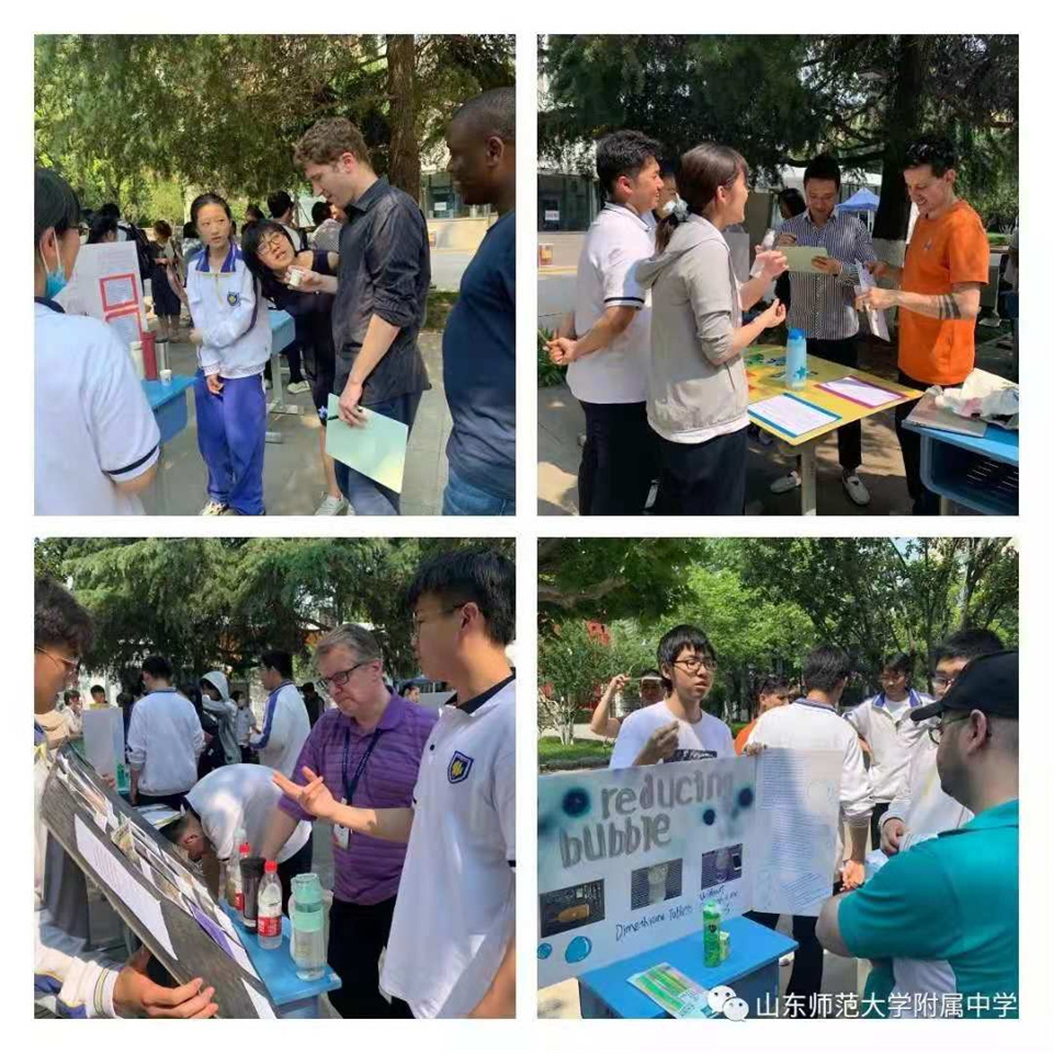 5月21日下午,山东师大附中国际部成功举行第六届Science Fair科技节,圆满完成Science Fair各阶段的探索活动并进行了现场展示活动。山东师大附中副校长、校本部执行校长刘从军,校本部教务处主任张卫普,国际部高一年级全体同学,班主任,以及外教中教老师等参加了本次活动。
