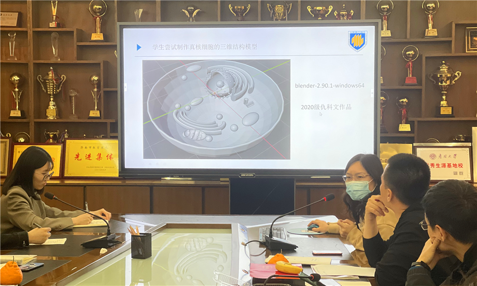 代立鹏汇报了生物理解性教学评价机制、反思机制研究以及“为理解而研”的生物教师专业发展机制研究进展;刘强汇报了“智慧学习在高中生物理解性教学中的实践与应用”,根据理解性教学和智慧教育的发展现状建构了智慧学习与高中生物理解性教学相结合的教学模型;曹玲汇报了家校合作对于理解性教学的促进方面的研究,并展示了“学科核心素养引领下的专题复习,有利于理解性学习”的研究成果,从生物学科素养四个方面对光合与呼吸专题的内容进行了归纳与总结;杜晓艳汇报了理解性教学实施方式及路径研究,分享了以学科特色活动以及实验教学作为研究切入点的收获,通过活动体验开展促进学生理解性学习的实践,这些活动包括高一生物备课组组织的模型建构大赛、结合2020级冬季学习竞赛系列活动举办的生物思维导图制作活动、学生尝试建构必修一第5章《细胞的能量供应和利用》的概念模型、引导学生通过建构数学模型理解细胞分裂过程中染色体、DNA等的数量变化等,在实验教学方面提出,一是参考优秀生物学实验教学的案例,将难以贴近生活的、实验操作复杂的、学生难以理解的实验进行改进,以促进生物学实验教学,二是引导学生以小组为单位,通过合作整理一些常考易错的实验小知识点,加深理解,提高学习效率,三是初步构建高中生物竞赛辅导的知识体系——暂名为《高中植物学》,准备下一步的深入研究。