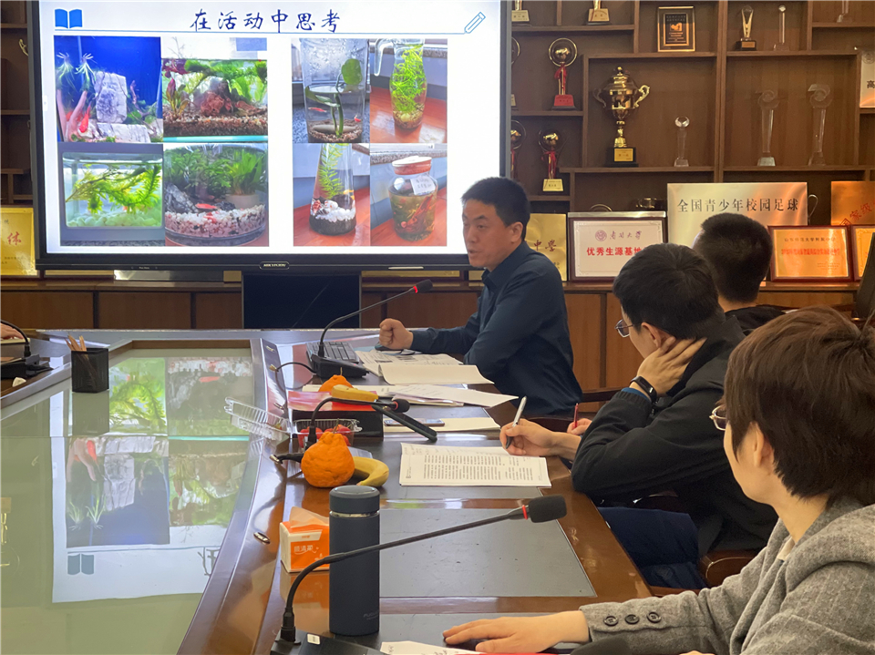 孔德星作了“在活动中促进理解和落实”的主题汇报,通过高二备课组组织的“山师附中首届生态缸造景大赛”和“传统发酵产品制作大赛”,让学生在活动中思考,在活动中体会,在活动中提升,从而促进理解性教学。