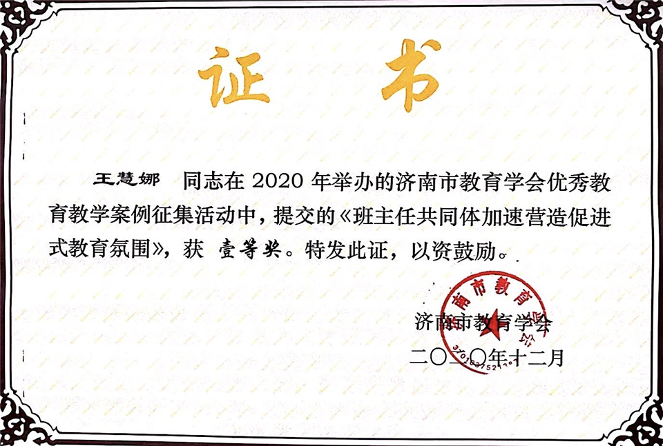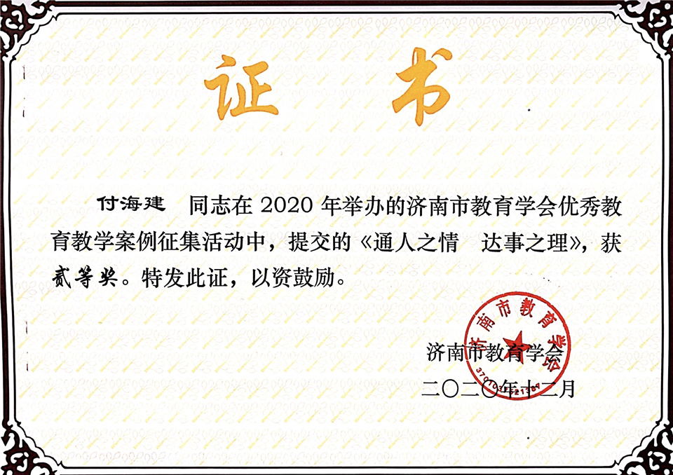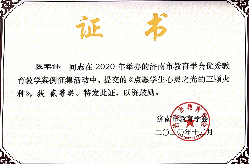 在济南市教育学会优秀教育教学案例征集活动中,我校选送的四项案例荣获佳绩,获得两项一等奖、两项二等奖。