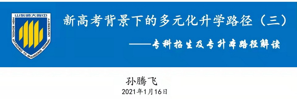 为了能够为每一个学生提供更精准化的升学规划 ,让学生能够发挥其所长, 获得更好的发展,孙腾飞为高三年级班主任作新高考背景下的升学路径的主题报告 。本次主题报告是新高考背景下多元化升学路径系列主题报告之三 ——专科招生与专升本路径解读 。