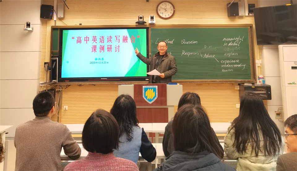 徐汉东就英语读写融合教学研究作主题讲座,为老师们的读写教学提升理论素养,开拓教学思路,并对下一步的读写融合教学提出建议。参会教师们进行了深度交流与讨论,解答了教学中的困惑,明确了读写教学的方向。