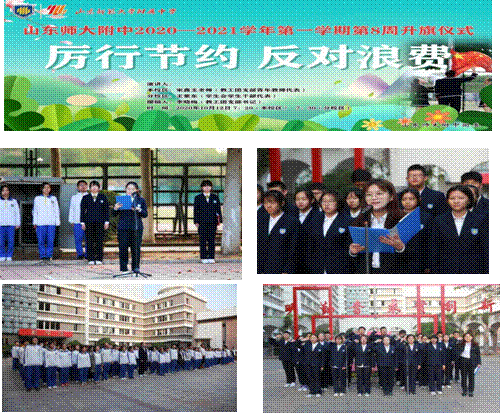 10月12日,两校区同时组织召开“厉行节约、反对浪费”主题升旗仪式。教工团支部青年教师代表和学生会学生干部代表分别在两校区做主题演讲。各班团支书在国旗下代表班级进行宣誓。他们表示,一定从身边的小事做起,珍惜粮食,厉行节约。