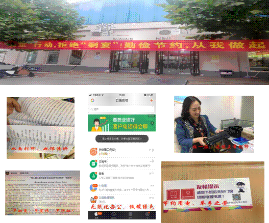 与此同时,各部门、各单位还将厉行节约的行动扩大到更多层面上:总务处在多个地方张贴醒目标志,号召节约用水、用电;学校工会号召各位老师无纸办公、双面用纸;各团支部同学纷纷成为监督员,监督并积极制止同学们的浪费行为。
