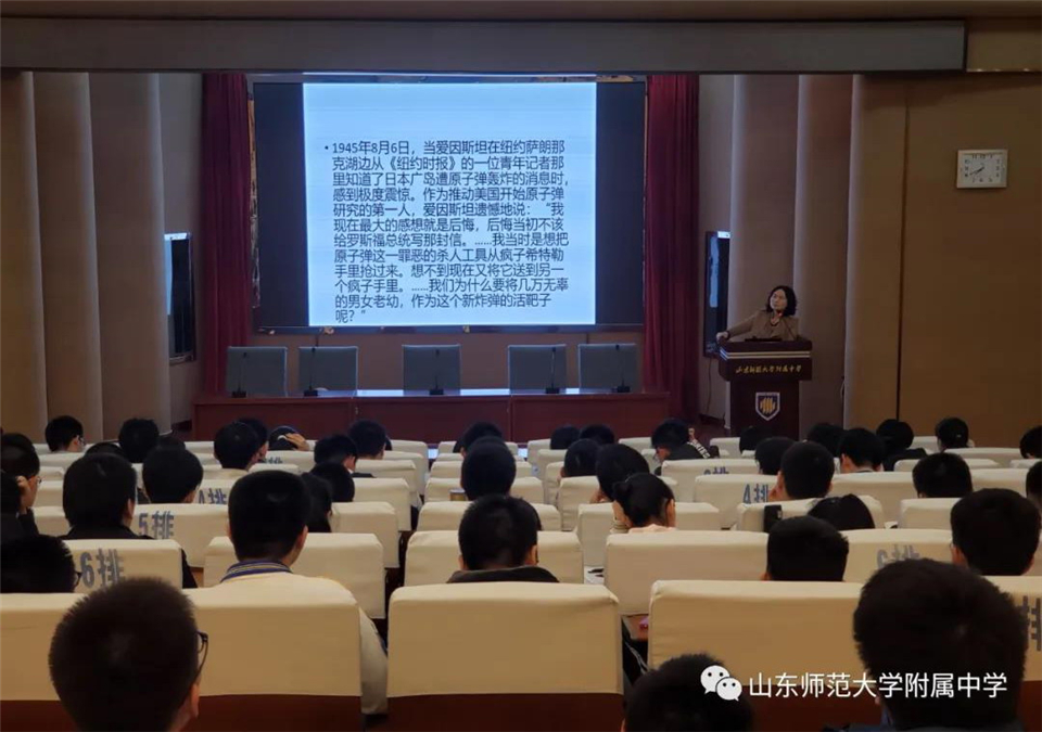 2020年11月20日下午,大连理工大学建设工程学部建设管理系博士生导师马力教授为山东师大附中带来贺信并作题为《伦理为科技护航》的专题讲座。此次讲座由政教处主任徐世水主持,部分教师代表和2019级学生在校本部报告厅聆听了报告。