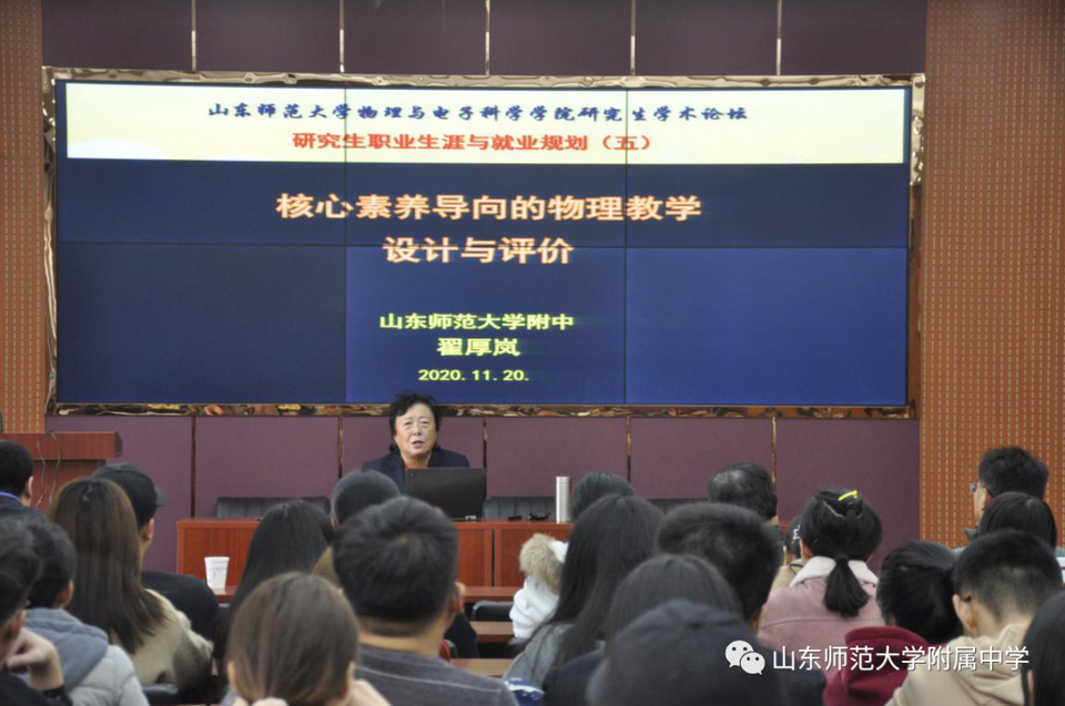 为培养德才兼备、具有良好的知识结构和扎实的专业基础的专任物理教师、科学教师和STEM教育研究和教育人员,11月20日下午,山东师大物理与电子科学学院于文澜楼A区347教室举办了研究生学术论坛。此次报告会的主讲人是山东师范大学附中正高级教师山东师范大学物理与电子科学学院硕士研究生导师翟厚岚老师。