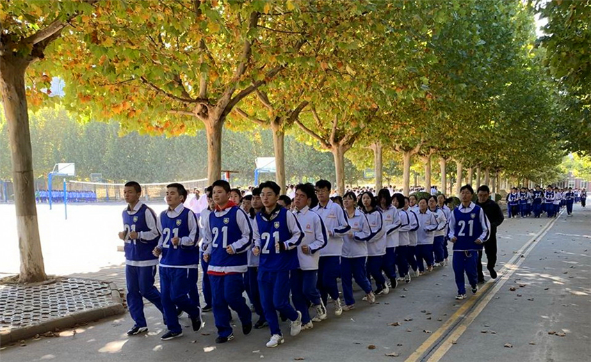 为促进校园活动,丰富校园生活,增强学生身体素质,提高班级凝聚力和组织纪律性, 10月15日至31日,山东师大附中幸福柳校区高三级部举办跑操比赛。