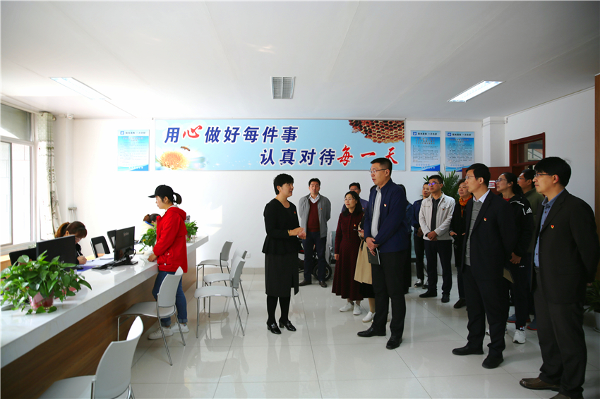 大辛庄党总支书记刘蕾同志带领大家参观大辛庄退役军人服务站、便民服务中心、党建活动室,详细介绍了大辛庄党建情况,全体党员认真聆听、切实感受着党员的初心和使命。