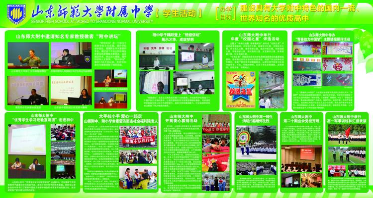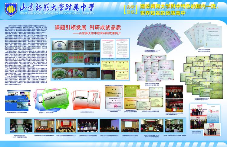 为使社会各界朋友更全面地了解山东师大附中的办学成就和办学特色,现通过专题图片的形式将学校的各方面情况进行集中汇总展示。请下载附件查看高清图片。 附件1:山东师大附中宣传册