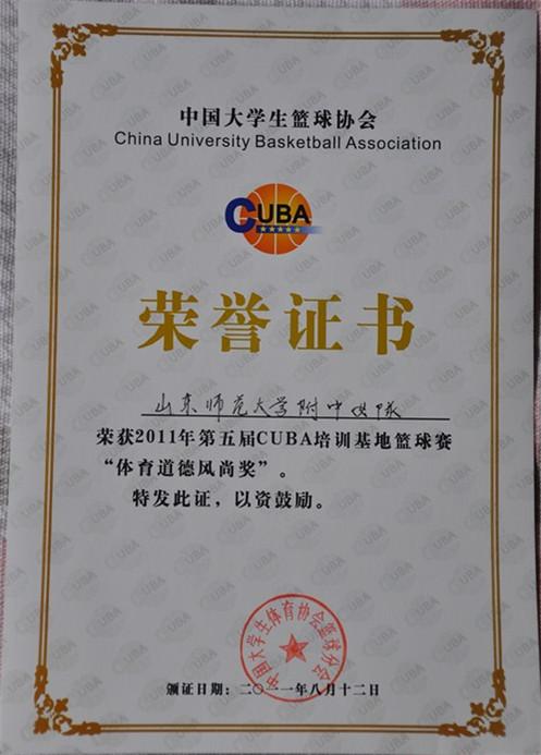 2011年山东省中学生篮球联赛由山东省体育局、山东省教育厅主办,8月7日-14日在日照市举行,来自全省各地的国家级和省级体育传统项目学校及省级规范化学校的篮球队参加了高中组比赛。山东师大附中女子篮球队在比赛中以九战全胜的成绩获山东省第一名,并获得体育道德风尚奖。