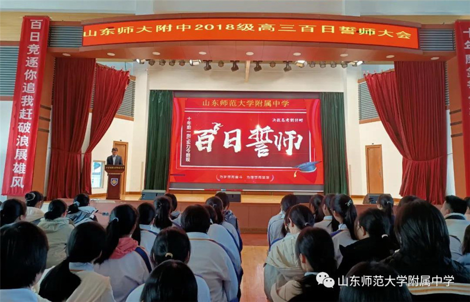3月27日下午,山东师大附中校本部在体育馆三层举行2018级高三高考百日誓师大会。会议由校本部高三年级组组长孙国旺主持,山东师大附中校长荆兆晶,党委书记孟宪喆,副校长、校本部执行校长刘从军,家长代表杨春玉女士,校本部执行校长助理刘明晖、政教处主任徐世水、教务处主任张卫普、教科处主任李贵玲、团委书记胡兆强以及高三全体师生参加了此次誓师大会。大会第一项由校本部执行校长刘从军致辞。他代表学校领导对同学们提出...