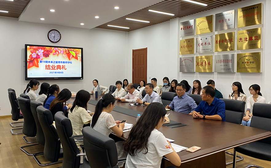 四季耕耘,不废锄犁;试问硕果,还是金秋。2021年9月8日晚6:30,山东师大附中“未来之星”青年教师学校(简称“星校”)第18期结业典礼暨第19期开班仪式在幸福柳分校至善楼会议室举行。山东师大附中校长荆兆晶出席讲话并作报告,校本部政教处主任徐世水、幸福柳分校政教处主任李宏波、党委组织员兼党政办公室副主任翟德玉参加结业典礼及开班仪式,第18、19期星校全体学员参加活动。活动由校本部教科处主任李贵玲主持。典礼伊始...