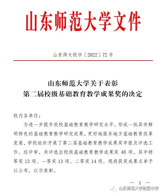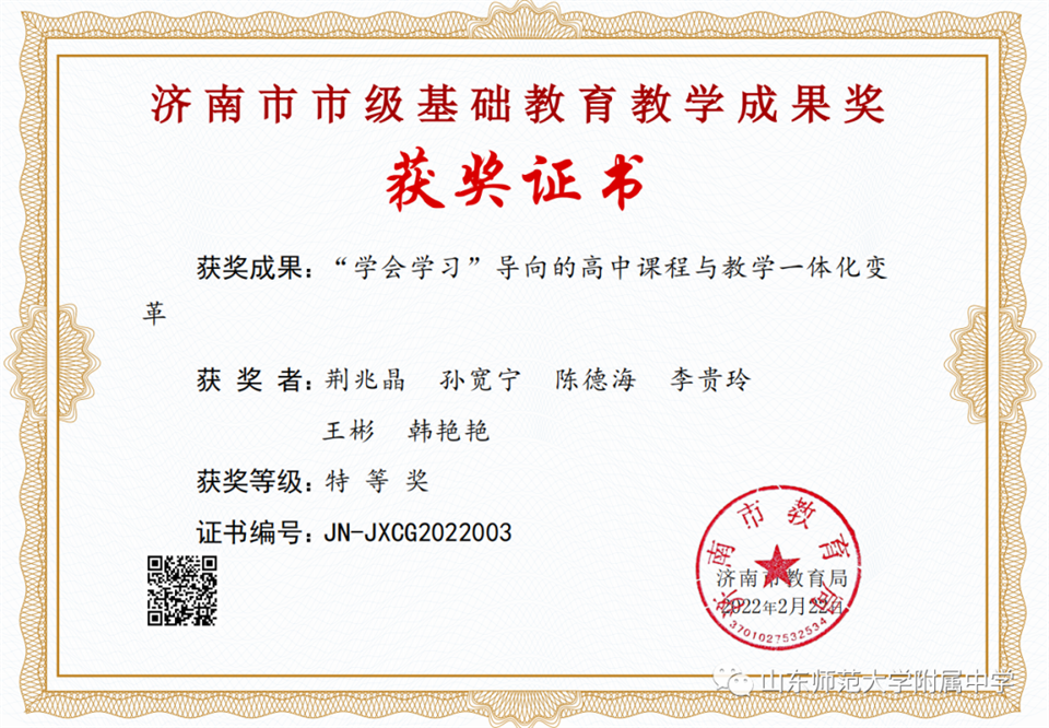 山东师大附中1项课题获济南市教育学会“服务济南教育高质量发展”专项课题立项